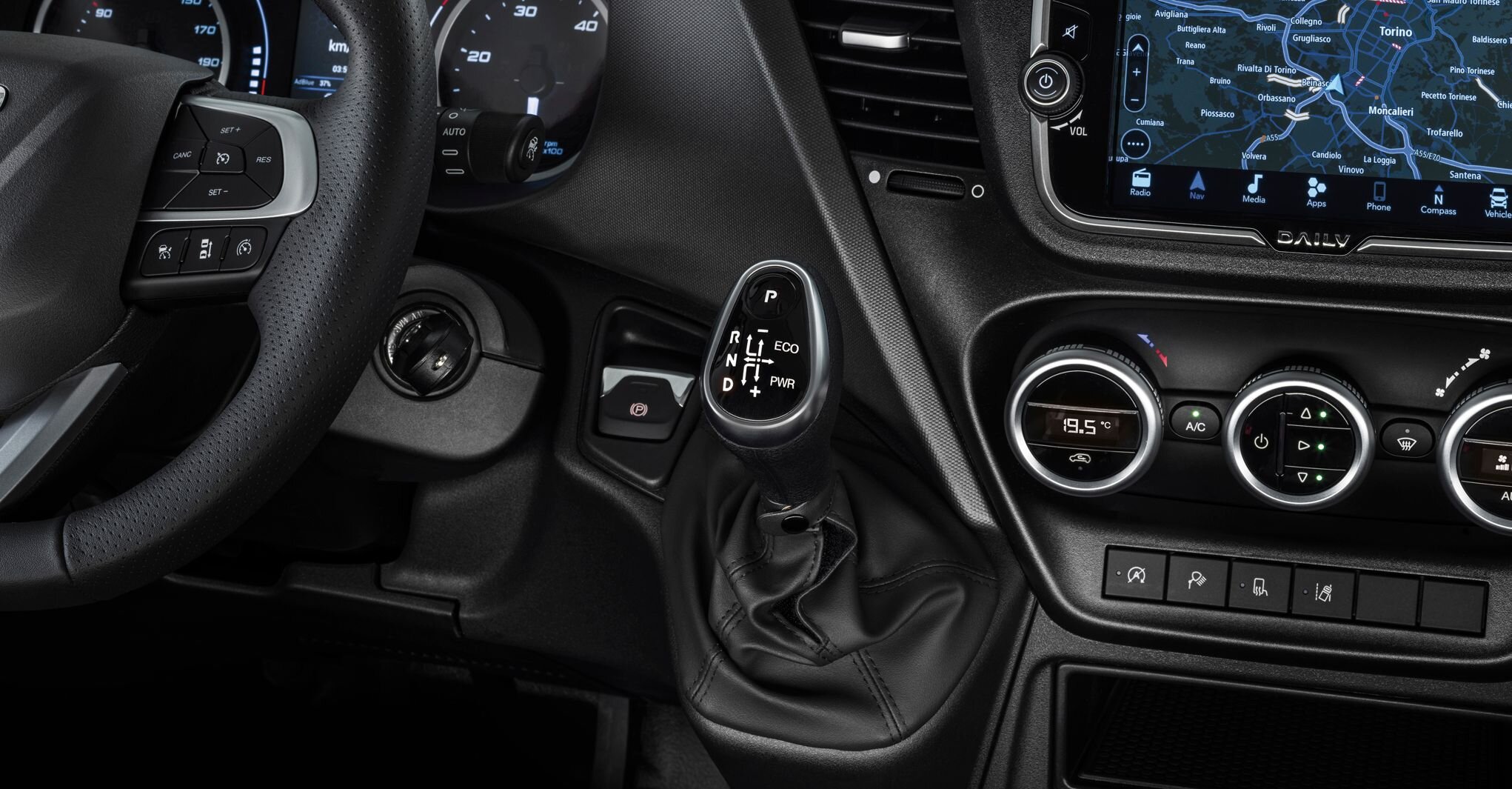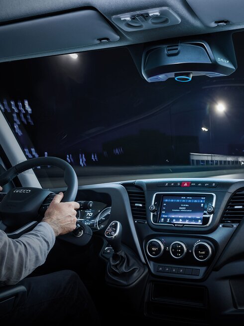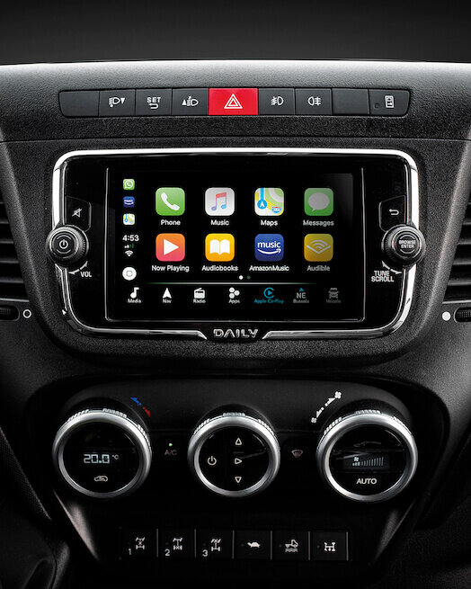 Das hochauflösende Farbdisplay bietet eine benutzerfreundliche, intuitive Schnittstelle für die einfache Interaktion mit dem DAILY und den Zugriff auf alle wichtigen Einstellungen des Fahrzeugs.