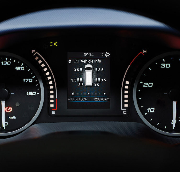 Die AIR-PRO-Luftfederung lässt sich mit einfachen Berührungen über die benutzerfreundlichen Bedienelemente am Armaturenbrett und im Laderaum, unterstützt durch die intuitive TFT-Grafik des Kombiinstruments, steuern. Leicht zu bedienen, damit Sie sich auf das Wesentliche konzentrieren können – Ihre Arbeit.